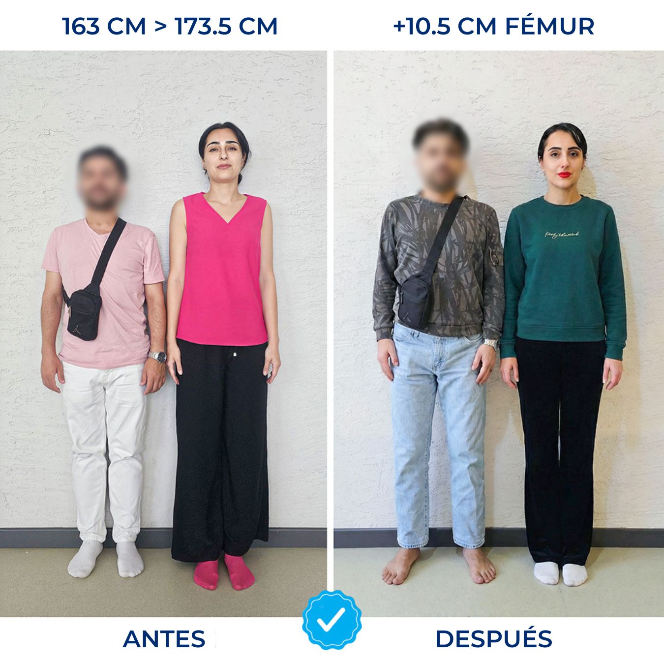 Con una sola cirugía, es posible alargar hasta 8-10 cm en los fémures y 5-7 cm en las tibias. Si tu objetivo es ganar más altura, con dos cirugías puedes alcanzar un total de 10-17 cm. Se recomienda realizar las cirugías por etapas para asegurar una recuperación segura y eficiente entre cada procedimiento.